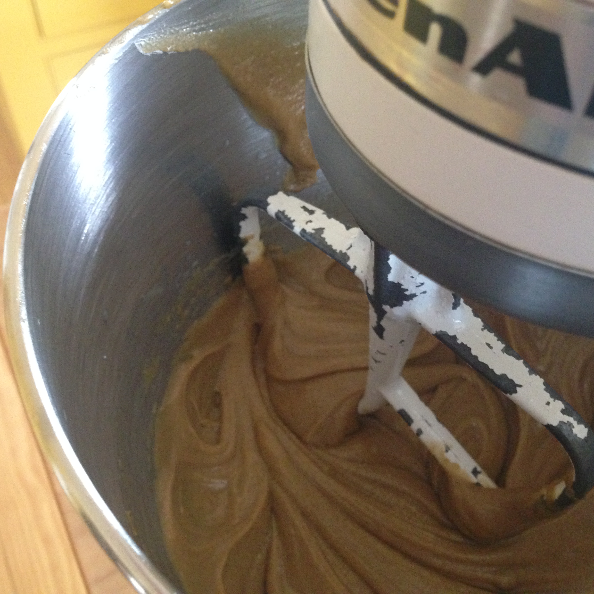 - In the bowl of a stand mixer, fitted with the paddle attachment, on medium speed, beat the butter and sugars together until glossy and thick and the color lightens somewhat (at least 5 minutes) scraping down the bowl with a rubber spatula, if necessary.