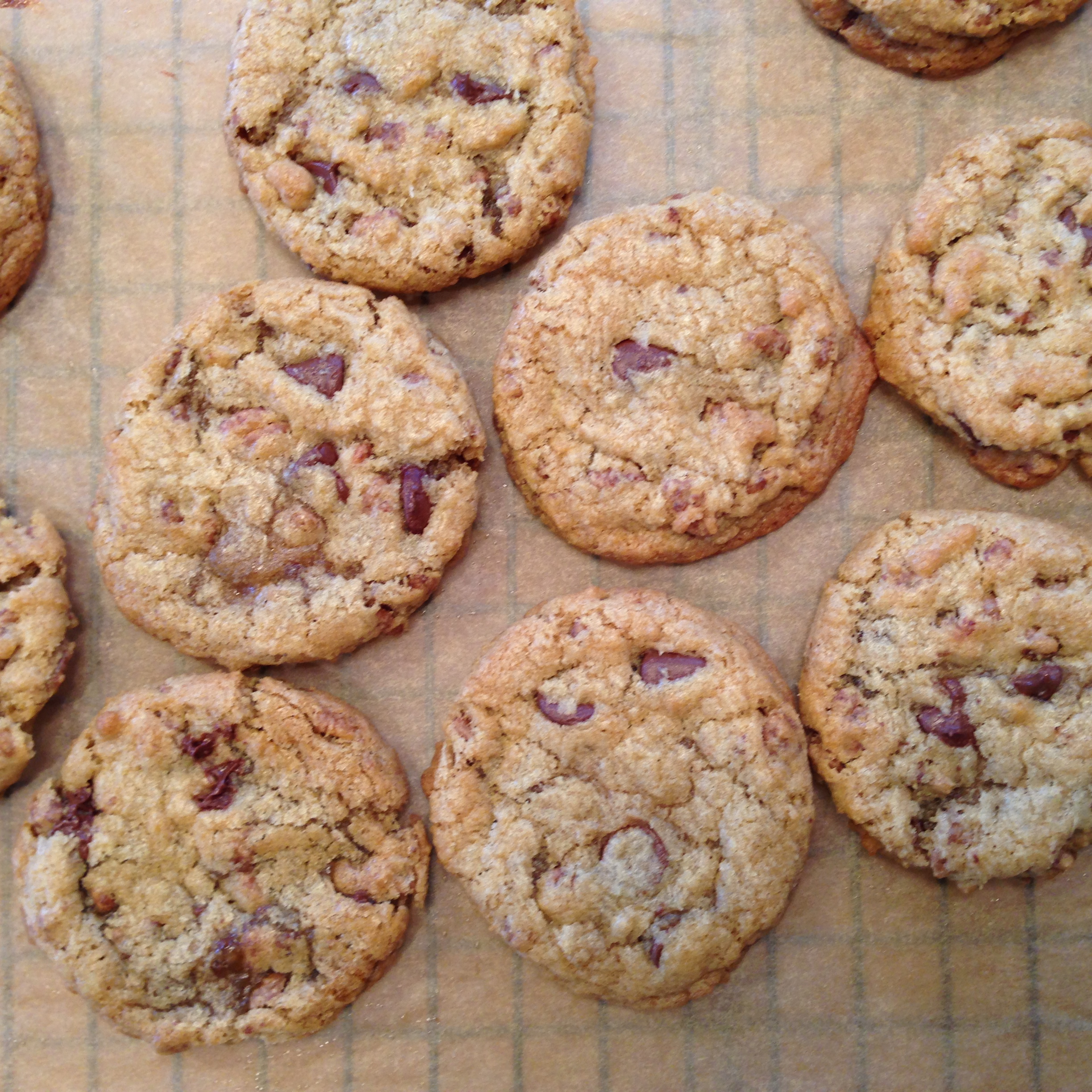 So, I am not one of those people who grew up in the kitchen at my mother’s apron strings, ceremoniously taking the mixing bowl from her at the tender age of 5 (or even 35) and revealing some innate pastry skills. My deep appreciation of sweets, however, did indeed exist from a young age and chocolate chip cookies were my first love. Both my grandmother and father made them, each using the Toll House recipe, but creating completely different cookies. My grandmother’s were tiny and perfectly shaped and very crispy, and my father’s were a bit more traditional looking, a little lumpy and somewhat cakey. I have super strong food memories of both.