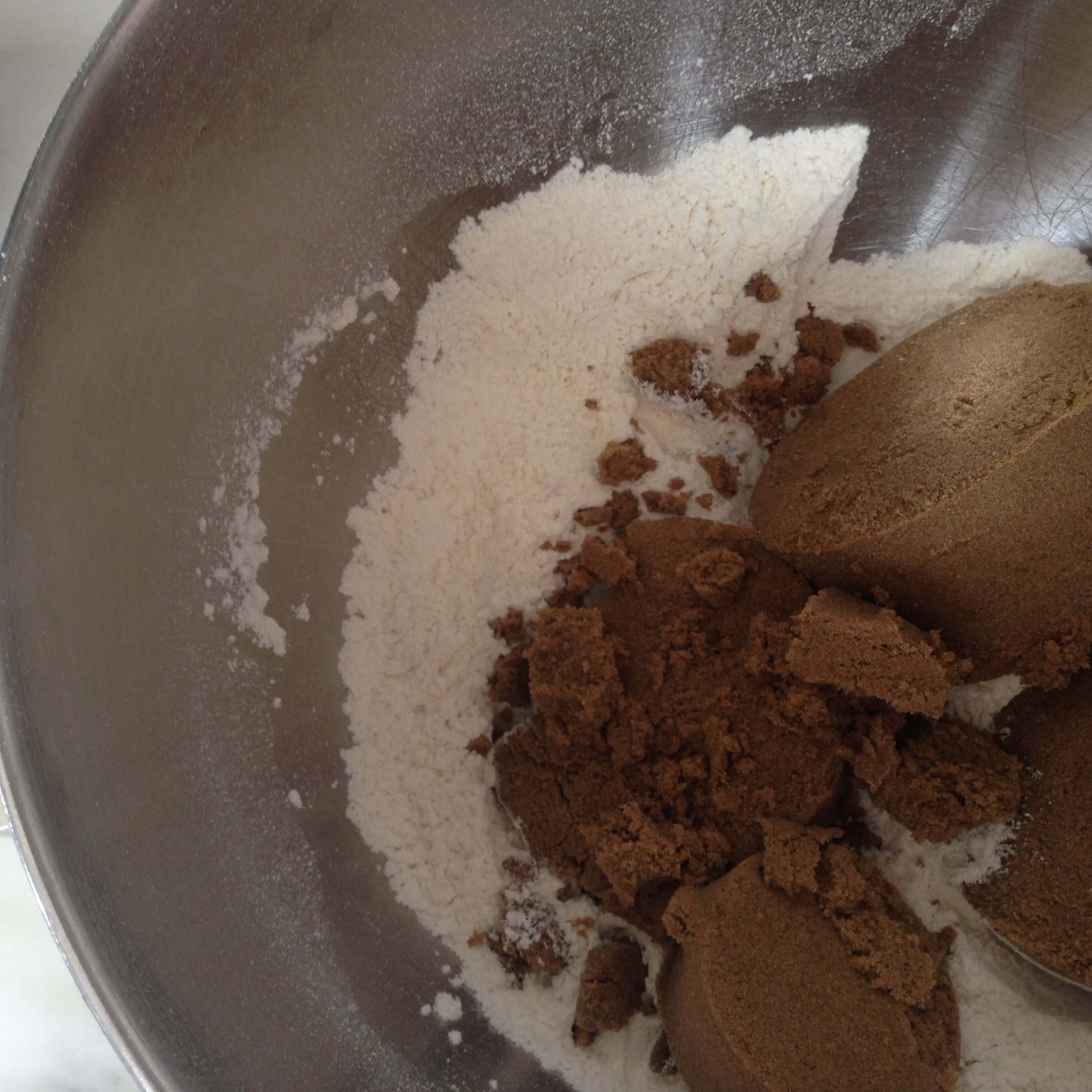 - Sift the flour, baking powder, baking soda and salt together into the bowl of a stand mixer and then briefly whisk the mixture to ensure the leavening is incorporated. Add the sugar and place the bowl on the stand mixer fitted with the paddle attachment, and mix on low speed while preparing the rest of the batter.*