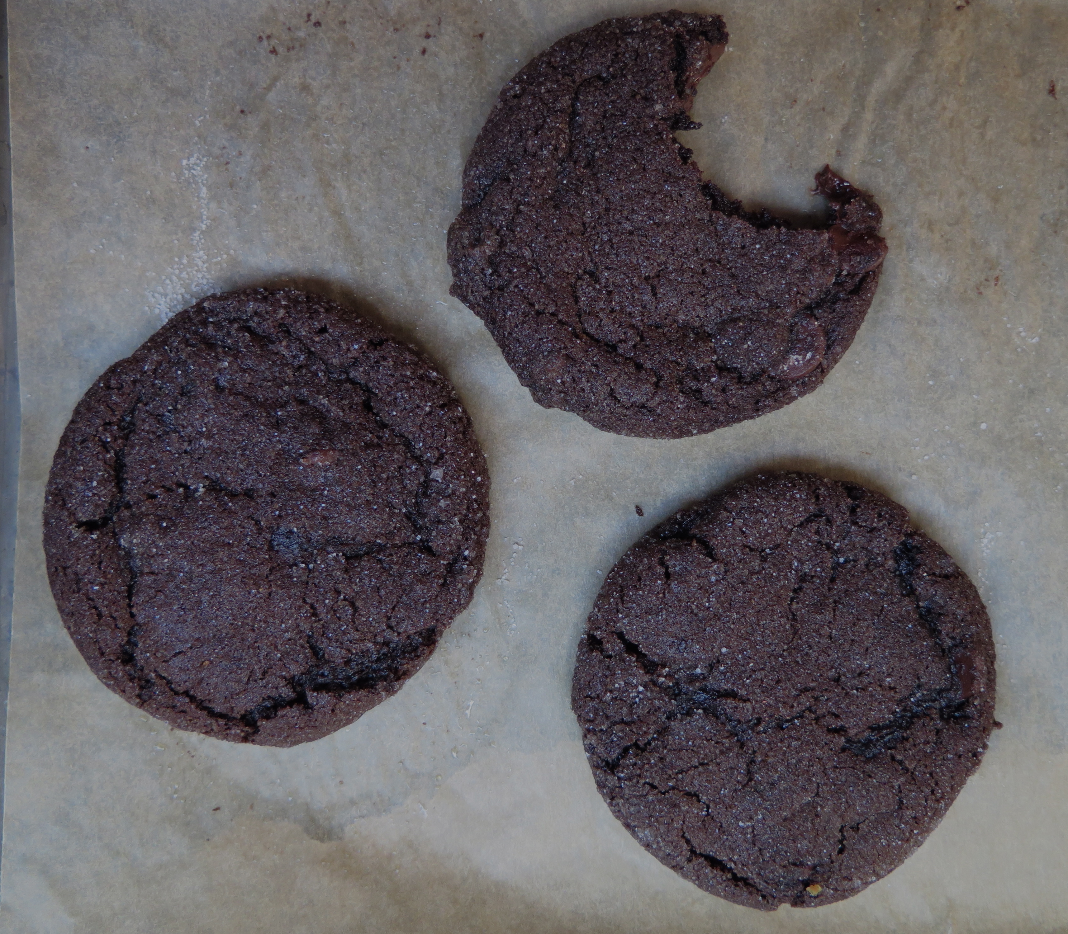As for my cookie’s chocolate-y-ness, I knew I wanted that amped up (Martha’s cookie uses a mere tablespoon), but was worried about overpowering the cookie’s spicy/molasses qualities. this cookie recipe from Serious Eats put my worries to rest, though, as its amped up chocolate flavor only intensified its molasses vibe.