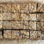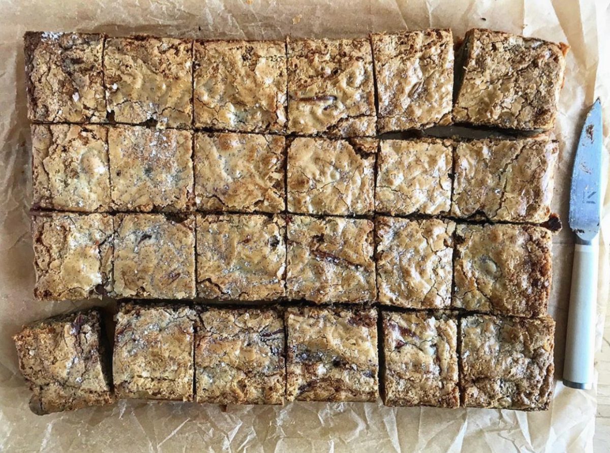 So I present you with a recipe for blondie perfection. Devoid of surprise ingredients or unusual techniques (save for an excellent brown butter hack in the microwave), this recipe is instead a combo of all that I love in a chewy, caramel-y, salty, chocolate-y bar-shaped treat. It has salted butter, a sprinkle of Maldon on top to cut the sweetness, a combo of light and granulated sugar, an extra yolk for moisture, vanilla paste (rather than straight up vanilla) cause it makes the caramel-y notes sing, and mandatory (I’m only kind of kidding) add-ins of toasted pecans and a combo of milk chocolate and bittersweet chips (cause the malt blondies I used to make at Baked have nuts plus a chocolate combo, and i wanted to pay a little homage, as well as take advantage of a good thing).