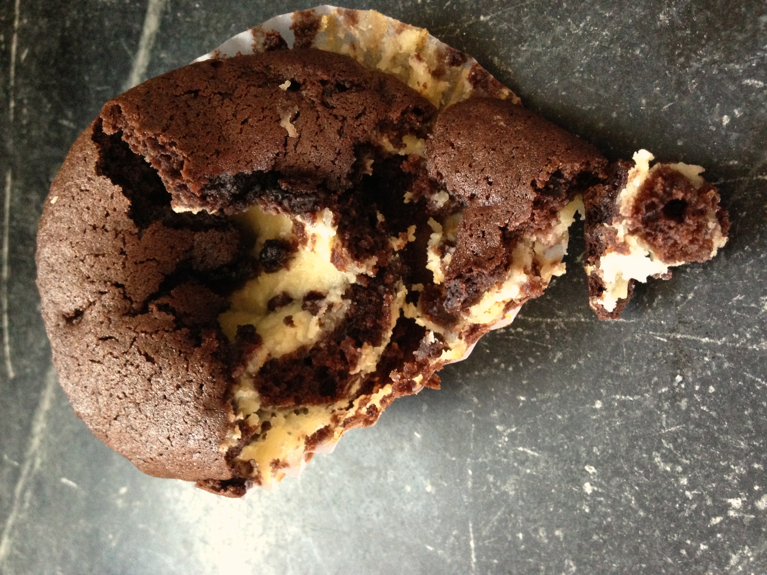 interestingly enough, at least to a recipe-development nerd like me, i found almost no mascarpone-filled black bottomed cupcakes on the internet, or in the books on my shelves, save for this, which a little sleuthing revealed is a recipe from this. and i was really, kind of flummoxed, as mascarpone seemed like such an obvious (and obviously awesome) substitute for cream cheese in a filled cupcake. but, of course, the dearth of mascarpone-filled chocolate cups was also somewhat thrilling, as it provided me with the chance to develop a somewhat “unique” sweet treat (and truth be told, my mascarpone filling was super runny and difficult to “fill” my cups with, until i froze it til scoopable. so, perhaps it was the runny-ness-factor that proved to be an obstacle to others? not sure . . . but i digress).