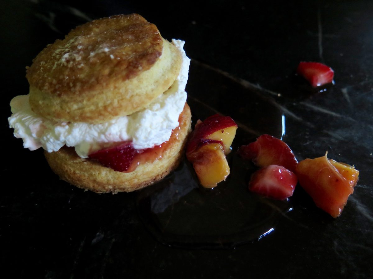 It is, in fact, reminiscent of the pull-apart nature of parker house rolls (or at least of my buttermilk parker house rolls). The two halves of the shortcake separate from one another, just as the rolls do from each other, revealing the fluffy and tender inside of each cake. “Yum” just about sums it up. Now, the recipe for said cakes was basically a no-brainer, as I just added some sugar and removed the cheese and pepper from my cacio e pepe biscuits and I had my shortcakes. (Although, I did look to Bon Appetit and David Lebovitz just to see what, if any, shortcake science was being dropped out there).