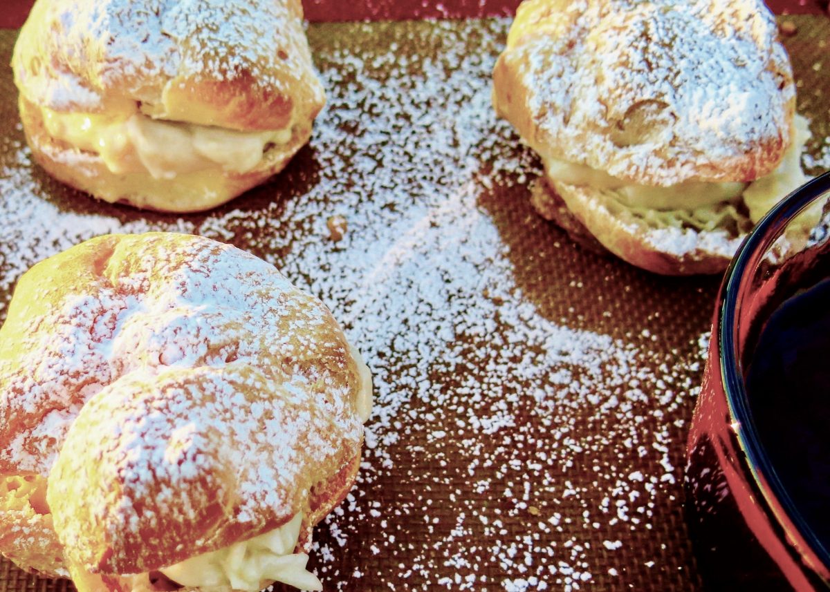 Coconut Cream Puffs with Dark Chocolate Ganache