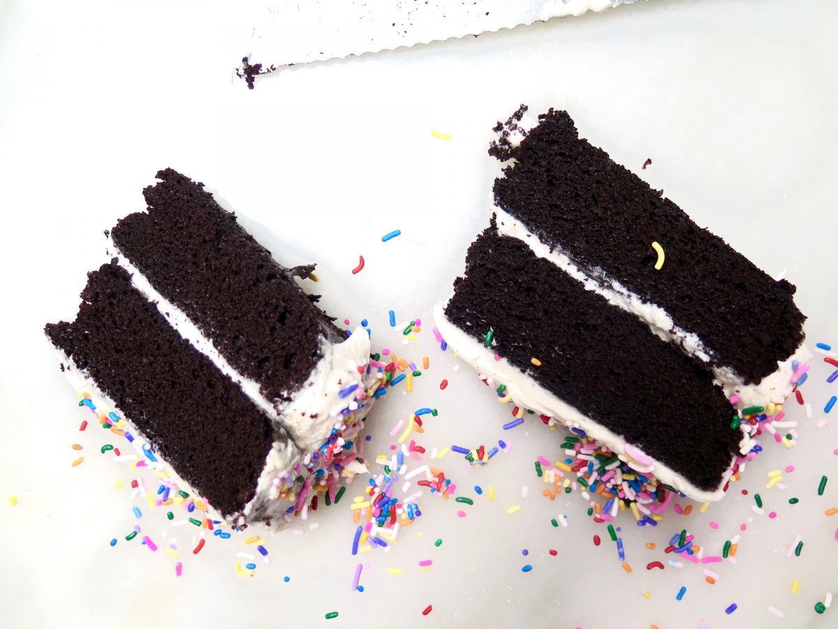 Using the Hershey’s recipe as my jumping off point, as others have done before me, I developed my own gluten-free one-bowl, calling for my favorite oil for baking, cup 4 cup in place of regular flour, and a soy milk/apple cider vinegar mixture in place of buttermilk (I read that soy and vinegar makes for the best dairy free buttermilk substitute). I also included a yolk, dark brown sugar, espresso powder, and a generous glug of vanilla. The resulting cake was spectacular. But unfortunately, my cake needed to be dairy free, and unbeknownst to me (i.e.: i did not read the ingredient list), cup 4 cup contains milk powder.