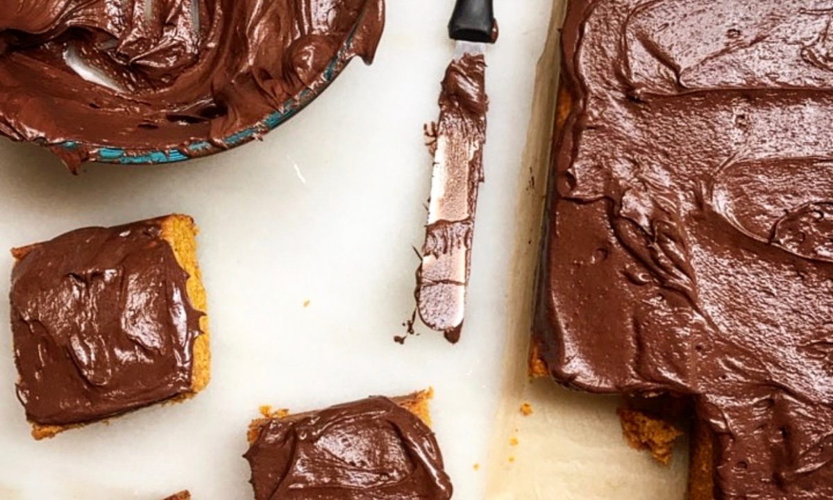 Pumpkin Sheet Cake with Chocolate Bourbon Buttercream