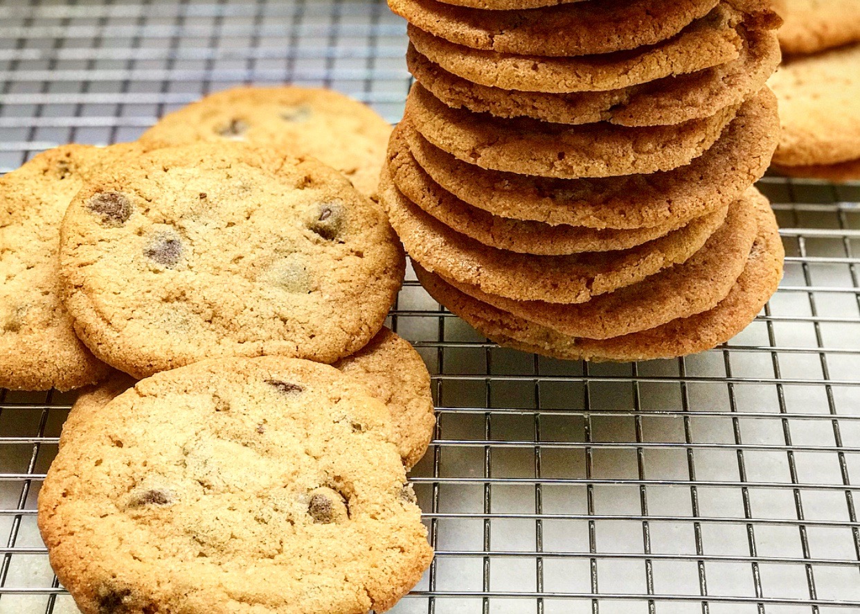 Peeps, I made thin and crispy chocolate chip cookies and I lived to tell about it. I am – and always will be – a thick and chewy chocolate chip cookie person. Like for forever. But I was inspired to try something a little different, and I am not sad I did.