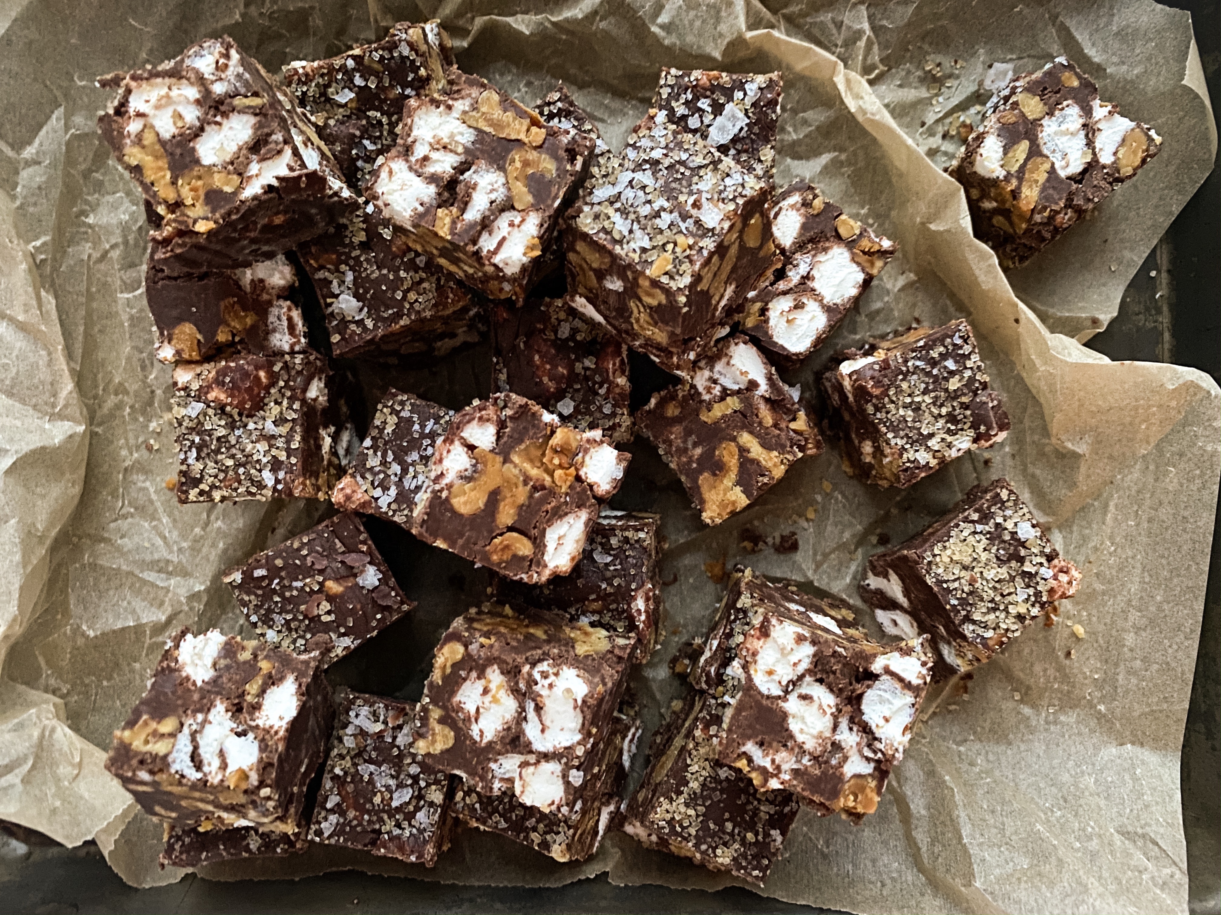 Chocolate Marshmallow Walnut Fudge with Flaky Sea Salt from The Vintage Baker