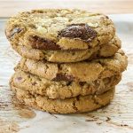 So, essentially, peeps, you are looking at my new favorite chocolate chip cookies and that is saying a lot, as I am pretty darn picky when it comes to chocolate chip cookies (and, FYI, you can see me make them right here, if you’re into that sort of thing . . . watching peeps bake, and all that . . . ). .They must be chewy, they must be slightly underdone, they must have crispy edges and they must have soft(ish) middles. They must taste of butterscotch, as well as caramel, and although they obvs need to have lots of chocolate, I like a balance – in other words not too much chocolate, but just enough (if that makes any sense at all . . . ).